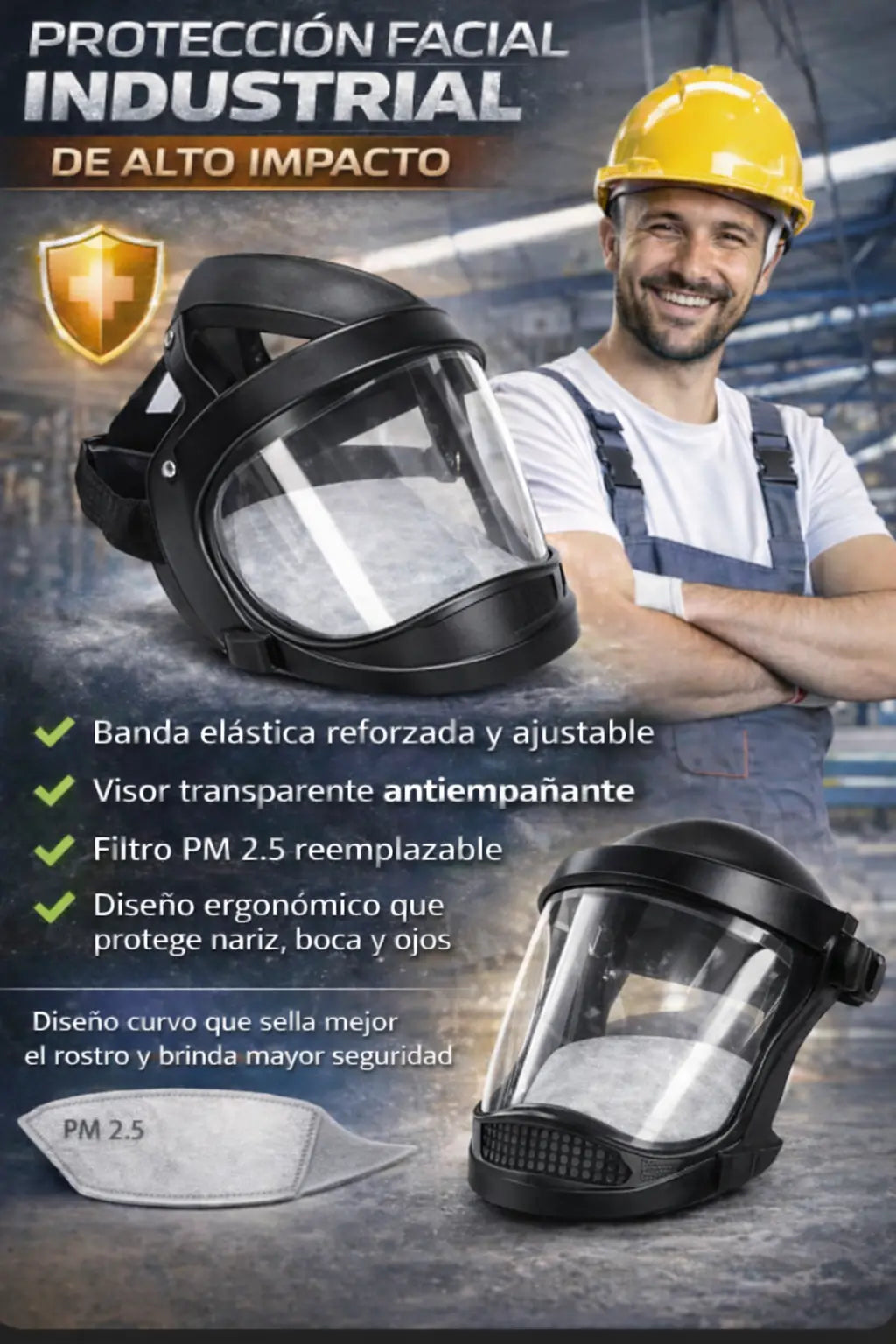 Con esta máscara proteges tu rostro sin perder claridad ni comodidad.